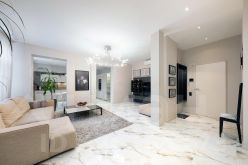 Интерьер квартиры выполнен по дизайн-проекту с применением качественных импортных материалов. Пол в комнатах из натуральной паркетной доски, гостиная и кухня керамогранит с подогревом.