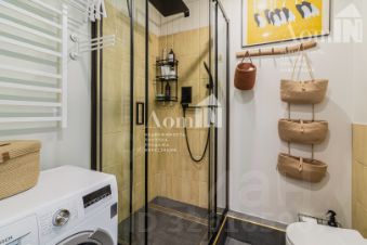 Общая площадь квартиры составляет 35 кв.м. Комнату 17.7 кв.м. разделяет гиппрочная перегородка, формируя уютную спальню 8 кв. м и отдельную комнату 9,7 кв.м. со встроенной системой хранения.