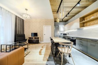 Квартира с дизайнерской отделкой полностью укомплектована мебелью IKEA, посудой и техникой.