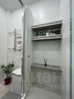 Очень продуманная красивая ванная комната с удобными полками в зоне душа. Даже туалет выглядит не банально!