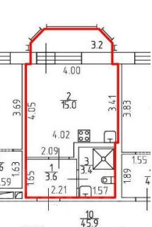 Квартира состоит из нескольких помещений : -кухня и комната 15 кв.м.( хорошей формы);