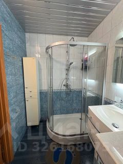 Санузел включает в себя непосредственно туалет, душевую кабину с тропическим душем и подвесную раковину с большим зеркалом. Также имеется змеевик, скрытая ниша за плиткой, где находятся повереные счётчики ХВС и ГВС до лета 2027 года.