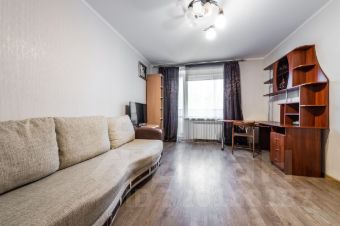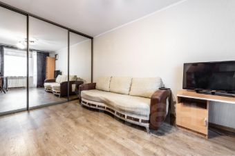Квартира расположена на втором этаже, общая площадь 31.2 кв.м, кухня 5.6, жилая 16.8. Балкон застеклён, санузел совмещён с ванной. В квартире выполнен качественный ремонт в светлых тонах, мебель и техника по договорённости остаются новым жильцам.