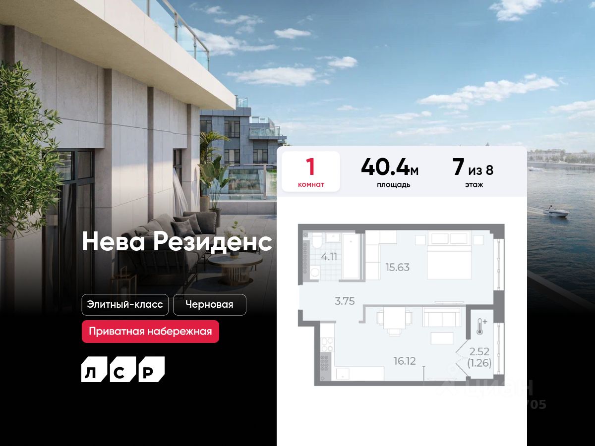 Продаётся 1-комнатная квартира в ЖК "Нева Резиденс" на 7 этаже. Общая площадь составляет 40.40 кв. м. Квартира без отделки. Жилой комплекс "Нева Резиденс" располагается по адресу Санкт-Петербург, Петроградский.