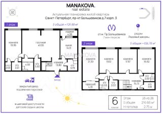 — Четыре изолированные спальни: площадью от 17 до 26 м² — отличное решение для детей, рабочих кабинетов или гостевых комнат