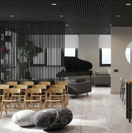 В центральном лобби предусмотрено музыкальная комната для жителей комплекса, зона с кофе поинтом и местом для ожидания.