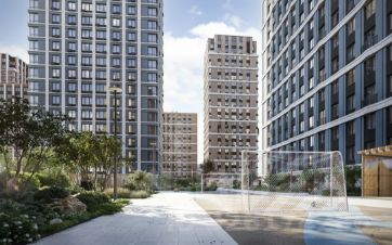 Корпуса объединены приватными дворами и соединяются пешеходным мостом. Каждая башня имеет свой оттенок, при этом они выполнены в едином стиле и цветовом коде.
