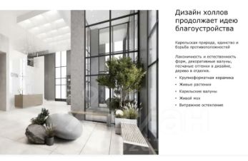 На территории имеется большой парк, бульвар, деревья и кустарники, отсылающие к природе Карелии. Перед центральной входной группой есть небольшой островок зелени с мультимедийным арт-объектом.