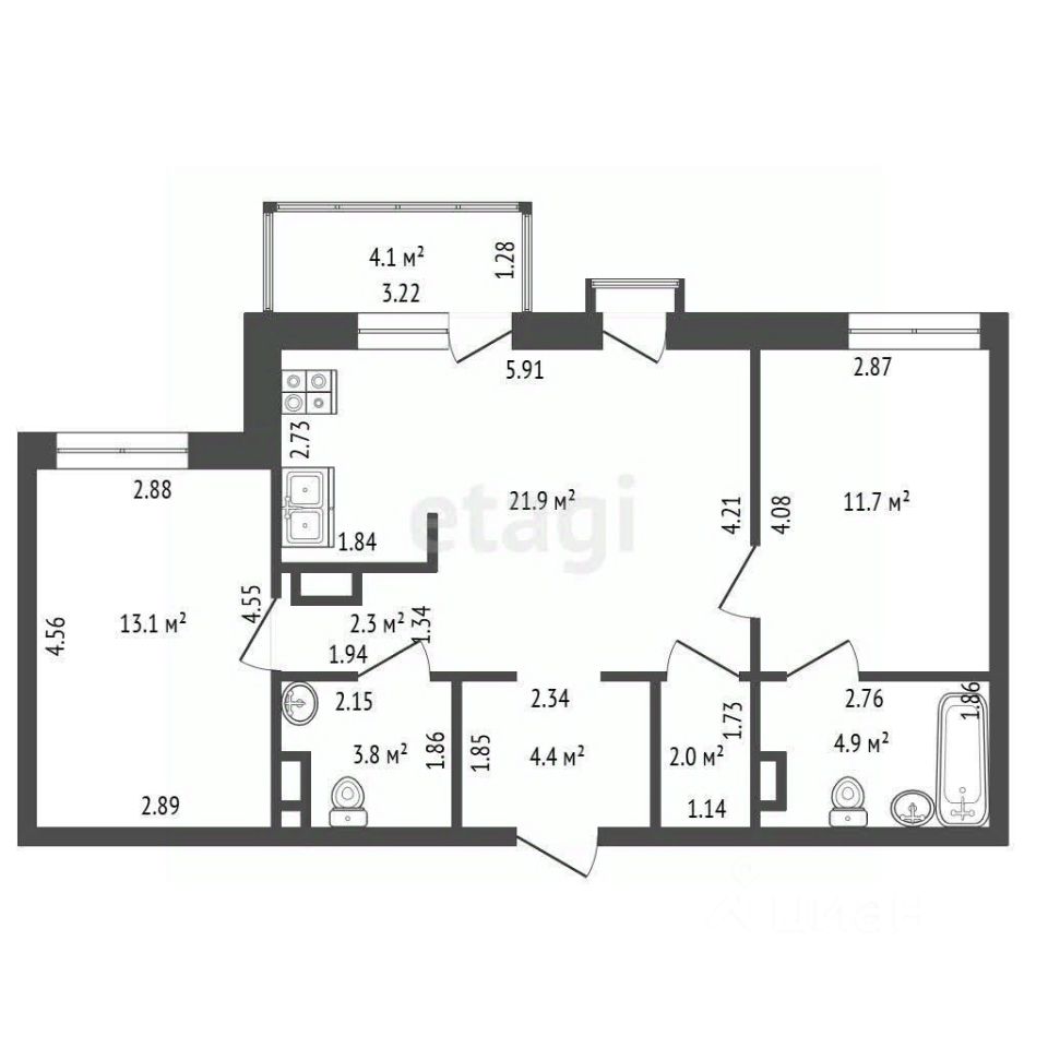 Уникальная и эксклюзивная планировка, где две спальни, а сердце квартиры- это просторная кухня-гостиной.