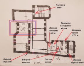 Сама квартира с косметическим ремонтом, свежая замена труб и сантехники. Есть два туалета и отдельно ванная комната. Комната для сушки белья. Большая и малая кухни, у нас на обеих свои достаточно большие места.