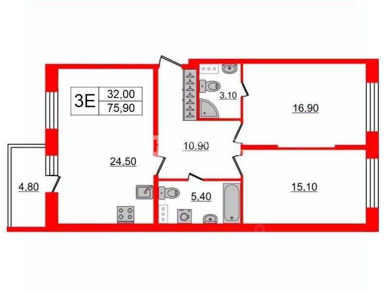 Вторая ванная комната 5,10м. Просторная прихожая 10,90м.