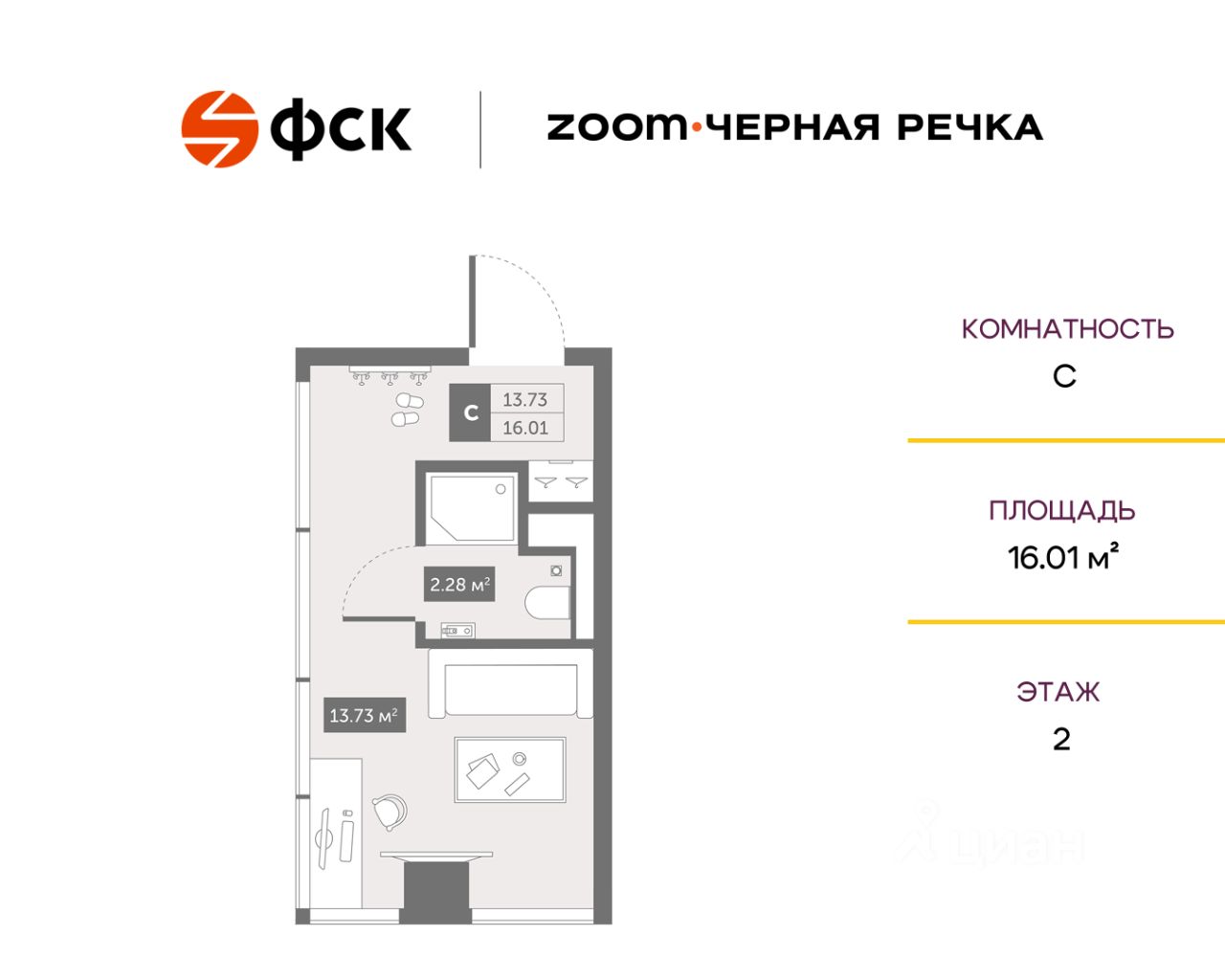 Общая площадь16,9 м²