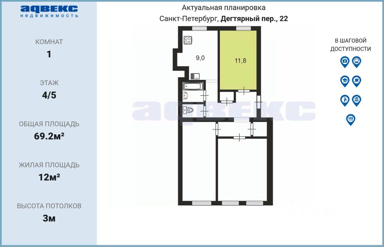 Культурная жизнь. Близость к главным достопримечательностям города: Эрмитаж, Петропавловская крепость, Исаакиевский собор, Спас на Крови, Дворцовая площадь - все главные достопримечательности города, что дает возможность использовать комнату для сдачи посуточно туристам.