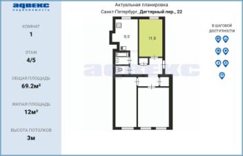 Продаётся светлая комната в историческом центре Санкт-Петербурга