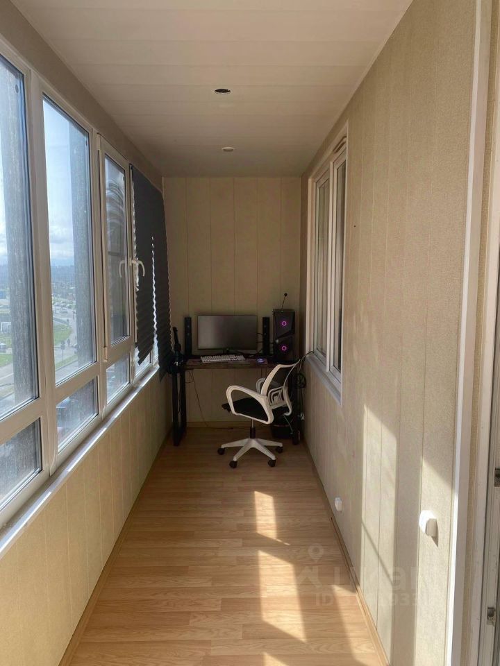 Большая кухня, очень большая комната. Но самым главным преимуществом квартиры является полностью утепленная и остекленная двойным стеклопакетом Veka лоджия, площадь которой почти 10 метров квадратных. Находиться на лоджии зимой можно без проблем, не промерзает. По сути, это вторая комната, которую можно использовать, как кабинет или под любую другую задумку.