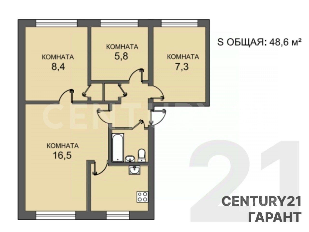 Общая площадь48,8 м²