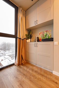 • Кабинет на утеплённой лоджии с панорамным окном, тёплым полом и встроенными шкафами — идеально для работы или отдыха Детская комната: