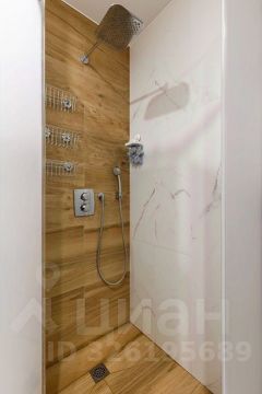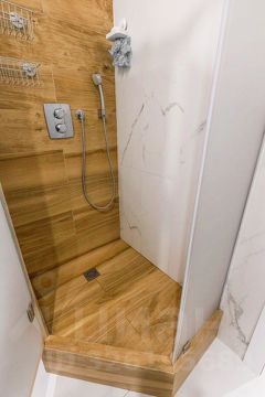 • Основной санузел: стеклянная душевая, тропический душ, инсталляция, гигиенический душ, зеркало с подсветкой, электрический полотенцесушитель, встроенные шкафы