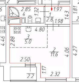 + Есть балкон = 2.2 кв.метра.