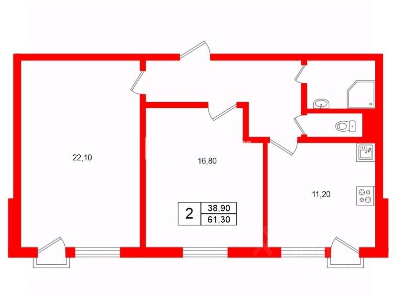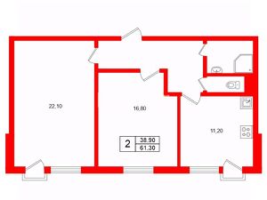 Общая площадь: 61,3 м2.