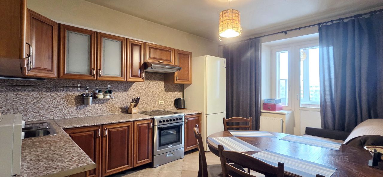 Двусторонняя, очень теплая и уютная, с современной планировкой: 2 изолированные комнаты: 17.1 м2 и 16.5 м2, комфортная кухня 12.6 м2 с выходом на застекленную лоджию 3.3 м2, зонированная прихожая 12.8 м2 с кладовкой 1.2 м2, совмещенный с/у 4.6 м2. Окна кухни и 1-ой комнаты выходят во двор, на север; окна 2-ой комнаты на юг. Последний ремонт был сделан в 2013 году. На стенах обои, крашеные потолки - высота 2.7 м, на полах: в комнатах и коридоре - ламинат, на кухне и в прихожей керамогранит. В с/у: на стенах и полу керамическая плитка. Качественные межкомнатные двери. 2 входные двери -металлическая и деревянная. Лоджия: утеплена, стены и потолок обшиты вагонкой, на полу - керамическая плитка, освещение, встроенный шкаф. Счетчики учета воды и эл/эн.