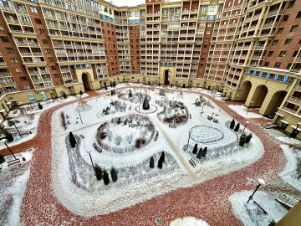 Закрытая придомовая территория с ландшафтным дизайном, зонами отдыха и детскими площадками;
