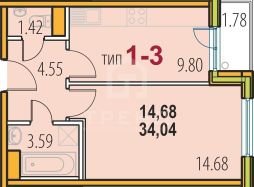 Общая площадь квартиры составляет 34,2 кв. м, из которых 16,4 кв. м — жилая площадь, 9,8 кв. м — кухня. Высота потолков 2,6 м создаёт ощущение простора и свободы. Евроремонт, выполненный с использованием качественных материалов, позволяет сразу заселиться без дополнительных вложений.