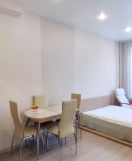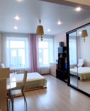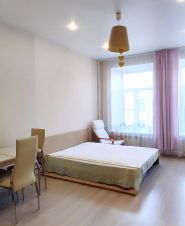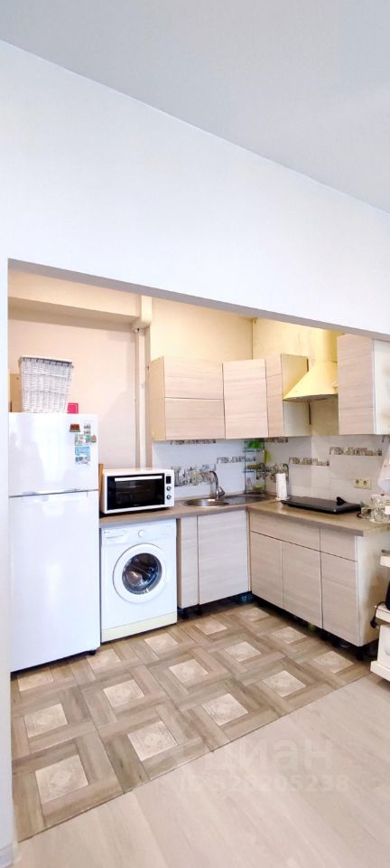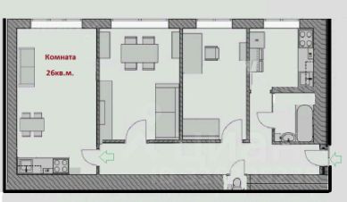 Выделена обеденная зона, кухонная и прихожая. Раньше из комнаты был свой отдельный выход в другую парадную. При желании можно сделать отдельный вход и свой санузел, что позволит получить из комнаты-полустудии полноценную студию. Потолки высокие - можно делать второй этаж.