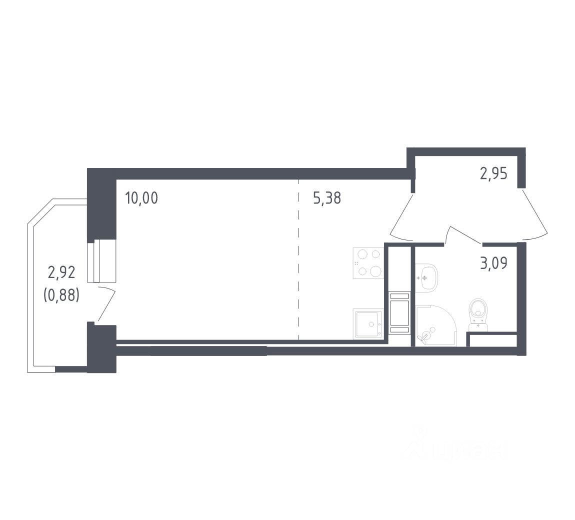 Общая площадь22,3 м²