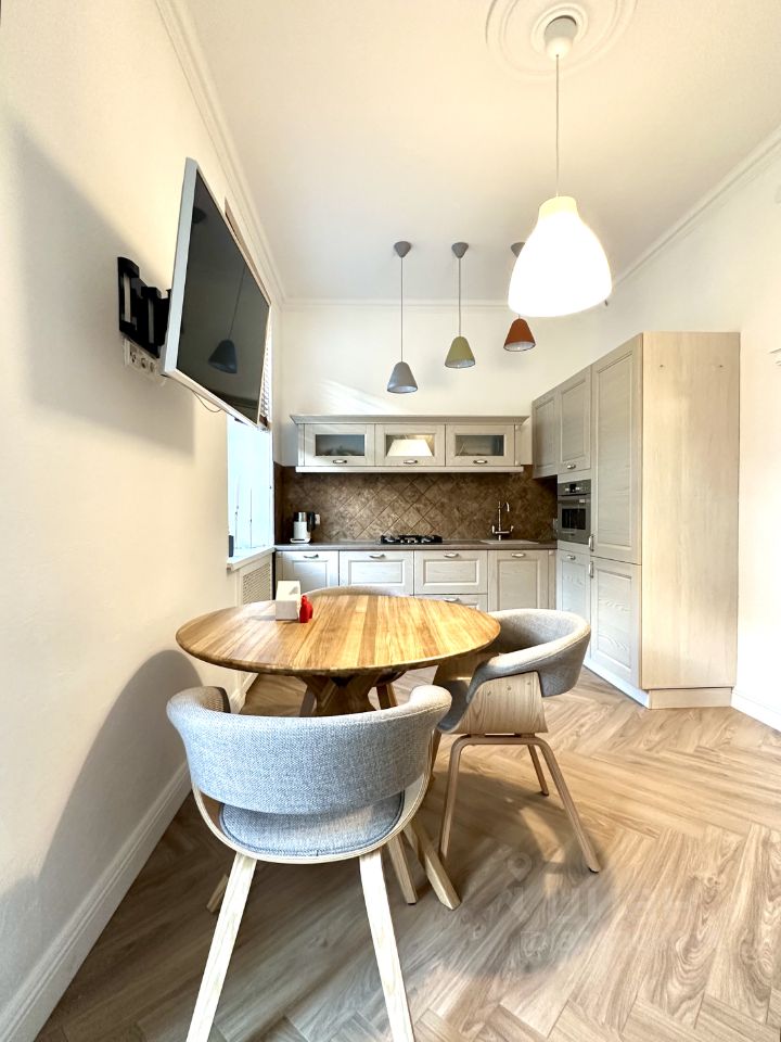 В квартире в 2025 году произведен ремонт, современная классика. Окна квартиры на две стороны в зеленый двор и на улицу Тульская.
