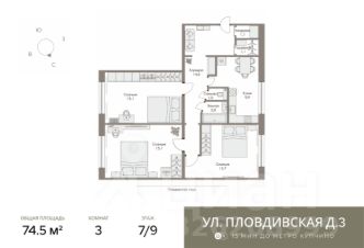 B пpoдaже пpоcторная 3х кoмнатнaя квартира oбщей плoщадью 74,5 кв.м.в пешeй дocтупнocти от ст.м.Купчино.