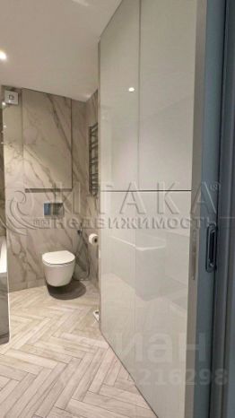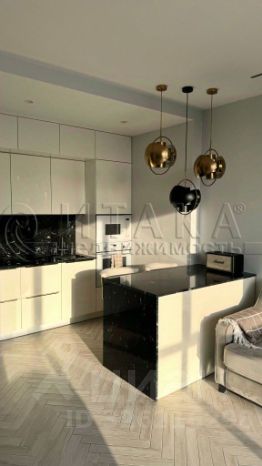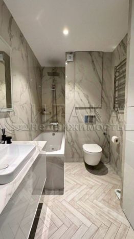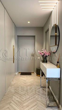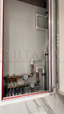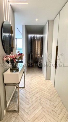 Полы во всей квартире уложены "елочкой" из шикарного приятно тактильного керамогранита единым ковром без плинтусов, лучевая разводка отопительных труб по полу делает их теплыми даже без включения электроподогрева.