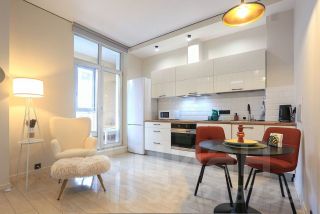 - Просторная гостиная-столовая, объединенная с кухней, выходит на балкон с видом на воду!
