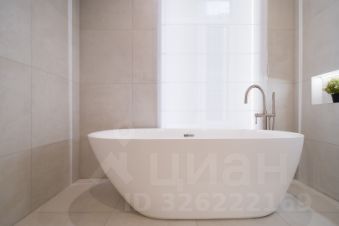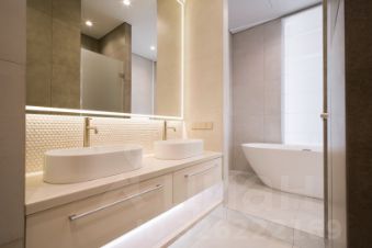Два санузла. На полу испанский широкоформатный керамогранит с подогревом. Редкий вариант - прямо у окна отдельностоящая ванна Cerutti. Раковины, унитазы от Valleri. Душевой уголок, смесители, инсталяция от Boheme. В душевой предусмотрена удобная каменная скамья. Стиральная и сушильная машины Miele. Водонагреватель Electrolux на 300 л.