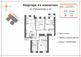 Идеальная, 4-х комн. квартира для семьи с 2 детьми, в историческом "Доходном доме П. Н. Пчёлкина" 1910 г.п. Великолепная, выверенная до сантиметра, планировка: зона столовой и кухни, 3 изолированные спальни, кабинет, 2 с/у, балкон.