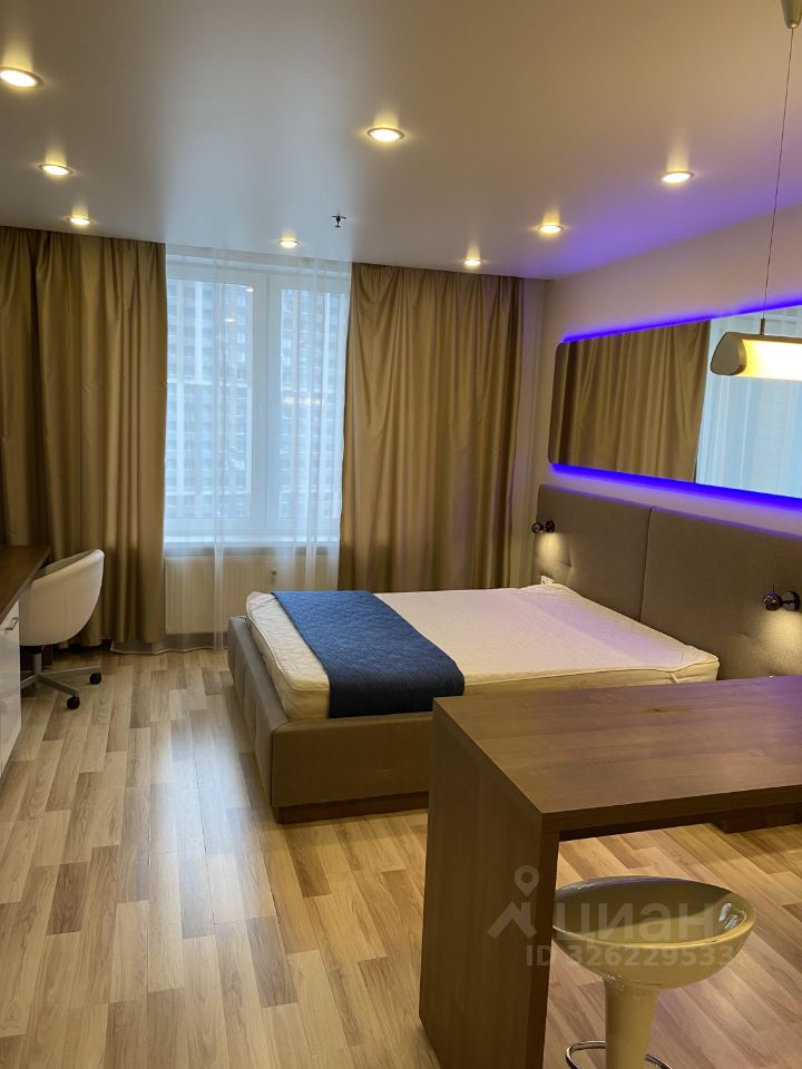 Уютные апартаменты в апарт-отеле " YES" с мебелью на 12 этаже.Есть необходимая для проживания техника:холодильник,стиральная машина,телевизор,электрический чайник.Также есть комплект постельного белья,подушки,одеало ,комплект полотенец, набор посуды.Вид из окна во внутренний двор ЖК "YES".