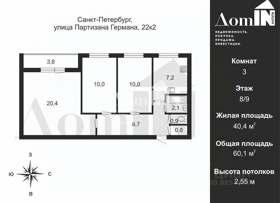 60,1 м²