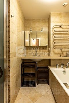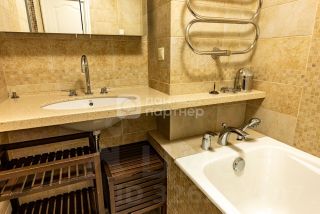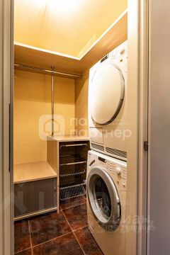 В квартире есть постирочная комната со стиральной и сушильной машинами Miele, система кондиционирования в ключевых зонах и большой балкон с панорамным остеклением.