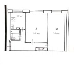 Площади: общая - 51,46 кв.м; жилая - 30,89 кв.м; кухня 5,82 кв.м. Комнаты изолированные : 13,47 кв.м. и 17,42 кв.м. Большой коридор с вместительным встроенным кладовым шкафом, есть антресоль. Совмещенный санузел с газовой колонкой. Окна стеклопакеты, в маленькой комнате натяжной потолок, везде новые радиаторы, установлены приборы учета на воду и электричество. Поменян стояк. Ремонт требуется.