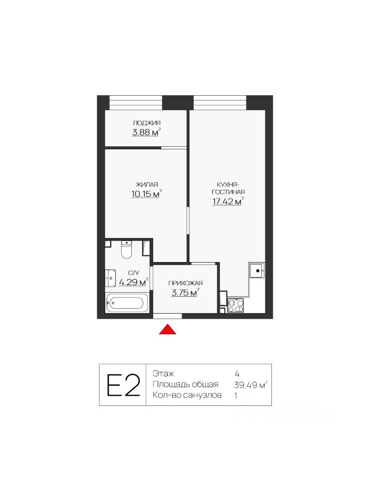 Общая площадь39,49 м²