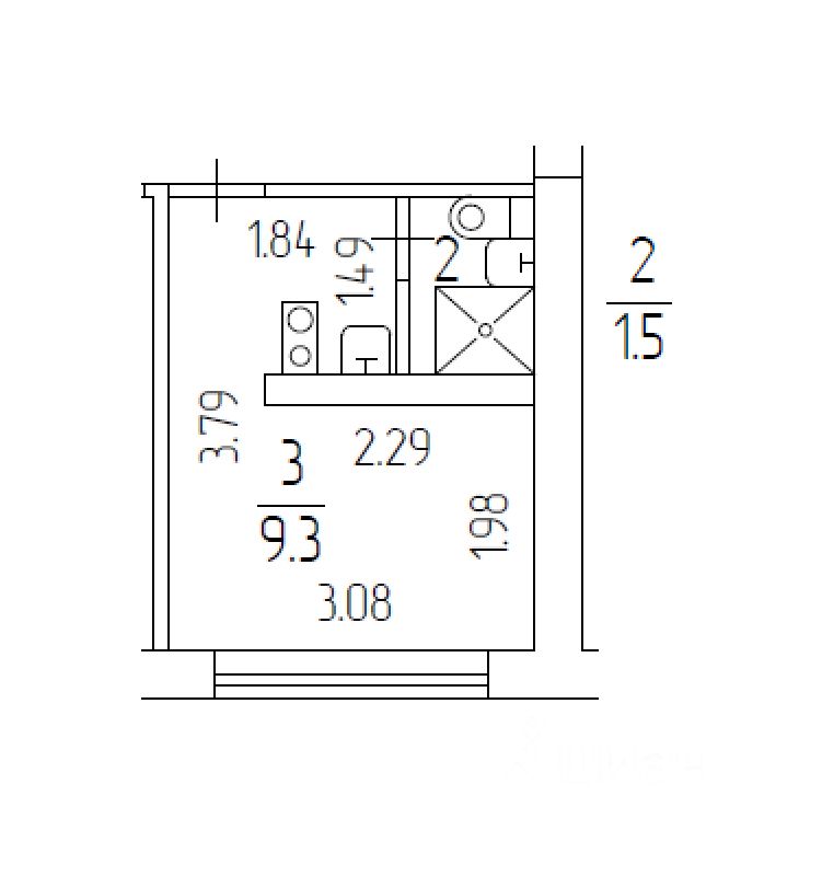 Студия площадью 11 кв.м, 7 кв.м отдельная комната и блок санузел+кухня 4 кв.м разделены стеной см. план. Окно со стеклопакетом смотрит в тихий зеленый двор. В студии оборудован совмещенный санузел, место под кухню.