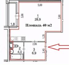 Площадь 40 м2 + 3 м2 лоджия