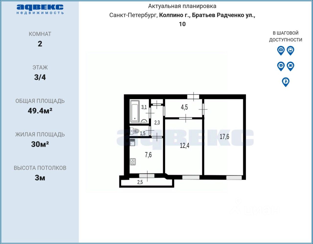 49,4 м²