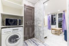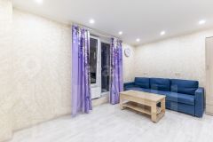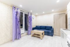Освещение в комнате включается по зонам: над диваном,зона кухни,зона тв. В санузле и прихожей, а также на балконе имеется теплый пол.