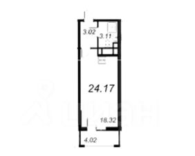 - Общая площадь 24,17 кв.м. + 4 кв.м. застекленная лоджия.