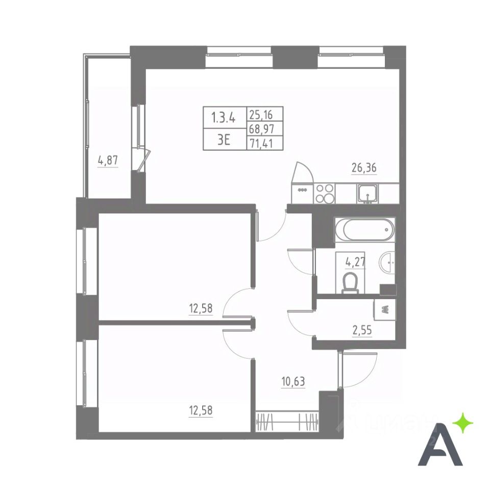 Общая площадь71,41 м²