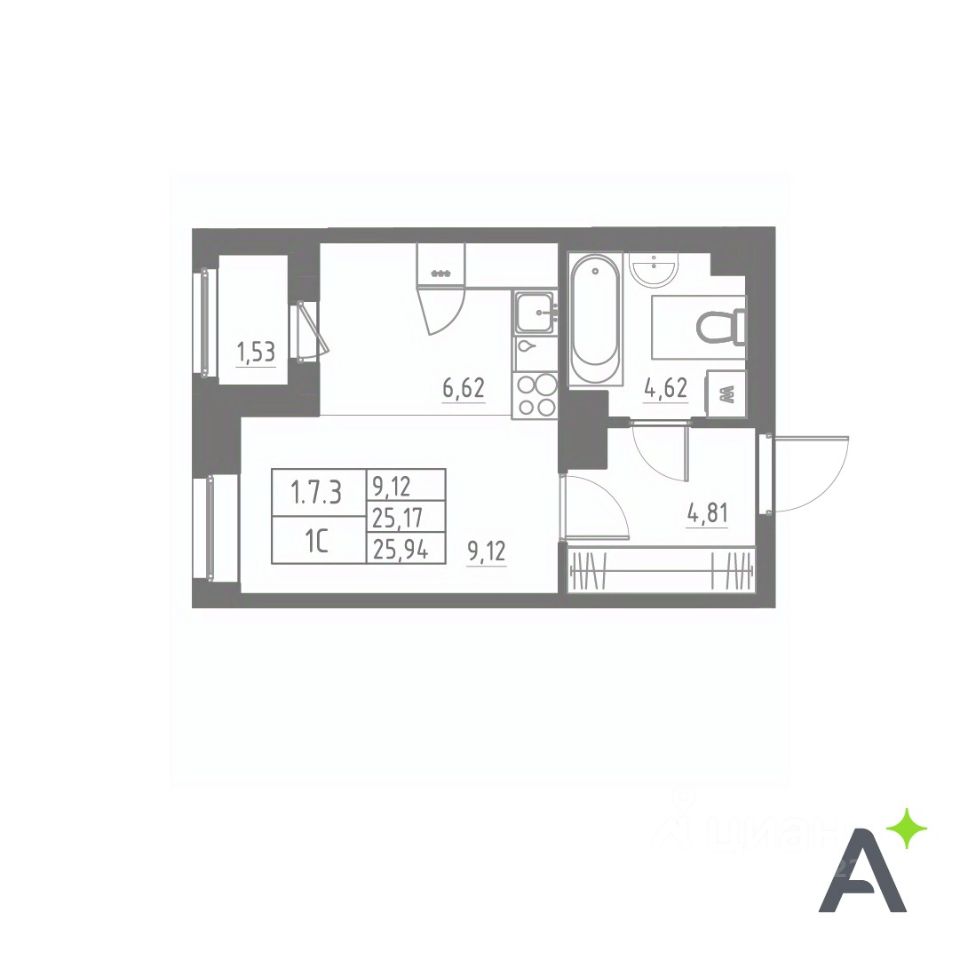 Общая площадь25,94 м²