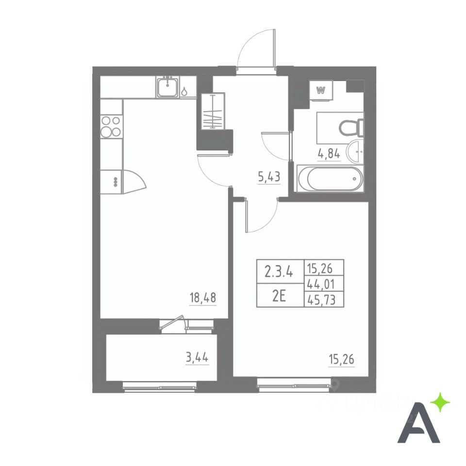 Общая площадь45,73 м²