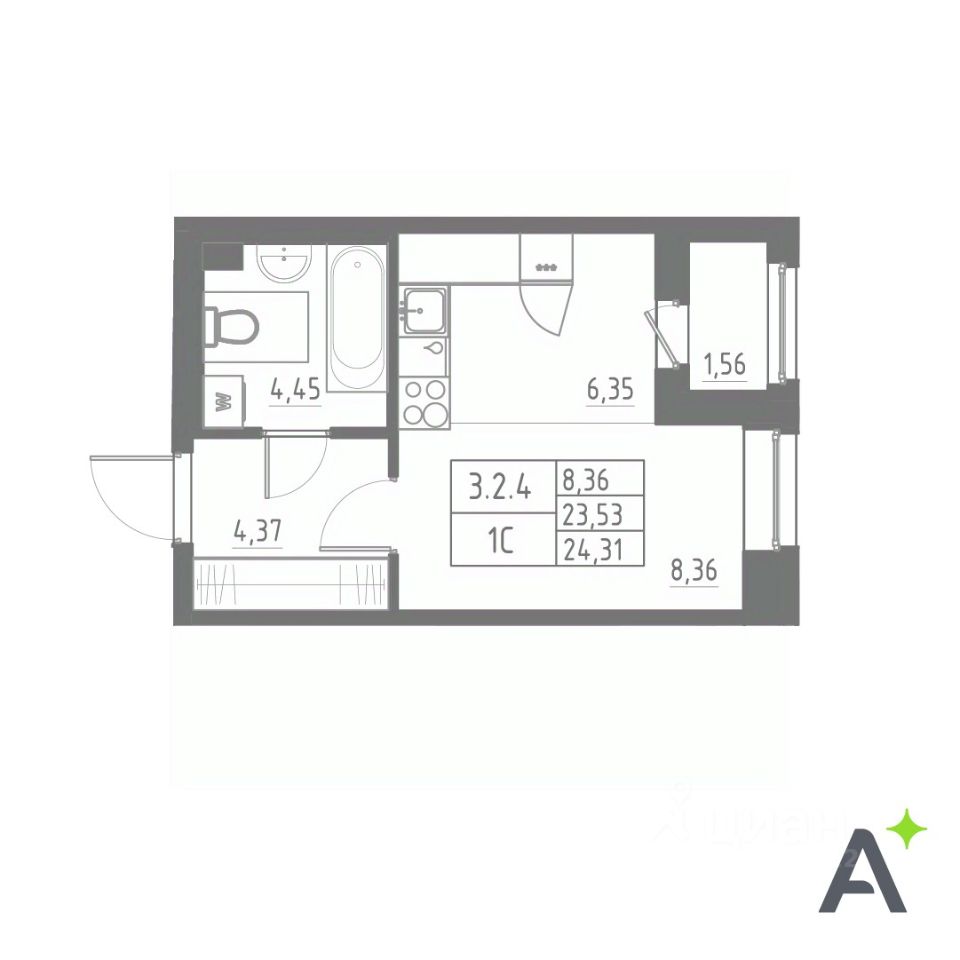 Общая площадь24,57 м²