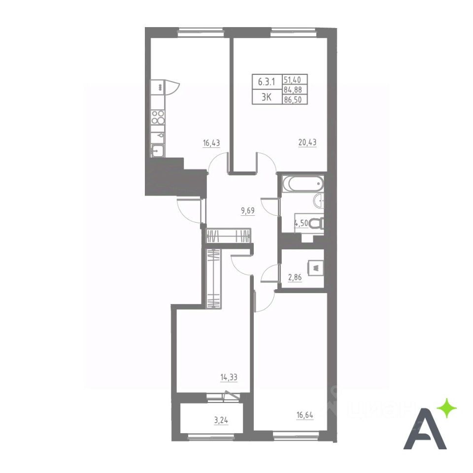 Общая площадь86,5 м²